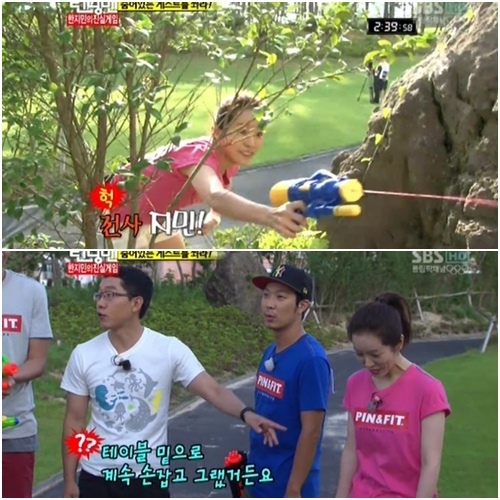 12日午後放送された SBS '日曜日が良い-ランニングメン'でランニングメンメンバーたちはゲストキム・ジェドンの名札に水鉄砲をうつミッションを受けた. ハン・ジミンミッションを受けるやいなやおびただしい勝負欲を燃やして闘志を見せた.