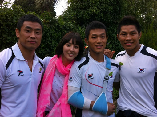 公開された写真にはハンヒェジンウを含めて金再犯, 宋対南, チョ・ジュンホの姿が盛られている. 特に柔道メダリストの間で明るく微笑むハン・へジンの姿が目立つ.