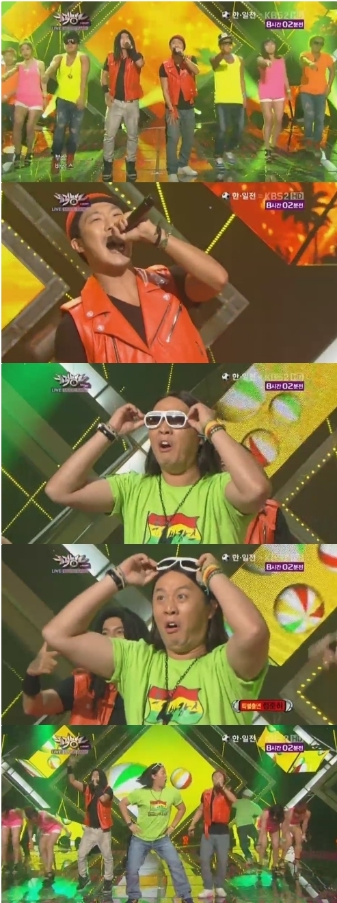 スカル&下する 10日放送された KBS 2TV ‘ミュージックバンク’で ‘釜山バカンス’路楽しみがわくレゲエ舞台を構えた.
