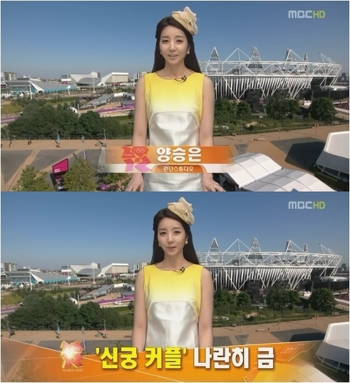 ヤングスングウンは 4日放送された MBC ‘ニュースデスク’で 2012 ロンドンオリンピック現地ニュースを進行する過程で可愛い帽子をかぶって出た.