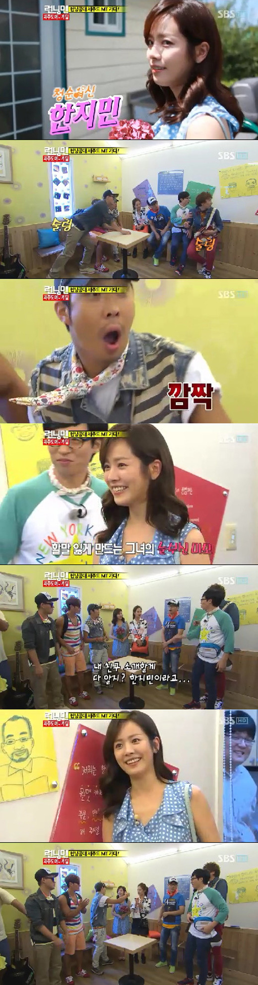 5日午後放送された SBS TV '日曜日が良い-ランニングメン'ではハン・ジミンが出演してランニングメンメンバーたちと済州島で奇想天外なミッション対決を広げた.