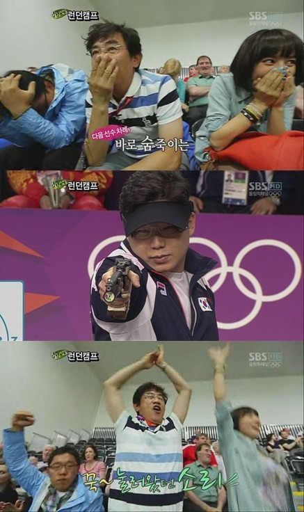 この日放送で MC 三人の人は男 10m 空気ピストル競技(景気)が開かれたイギリスロンドングリニッジパークの王立砲兵隊基地射撃場現場を尋ねたし, 韓国のジンゾングオ選手の金メダルが確定される瞬間競技場立ち去るように大声を出してジンゾングオ選手を応援した.