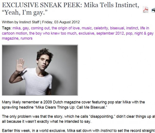 ミカのカミングアウトは去る 3日(現地時間) アメリカの同性碍子雑誌インスティンクト(Instinct)街公開した.