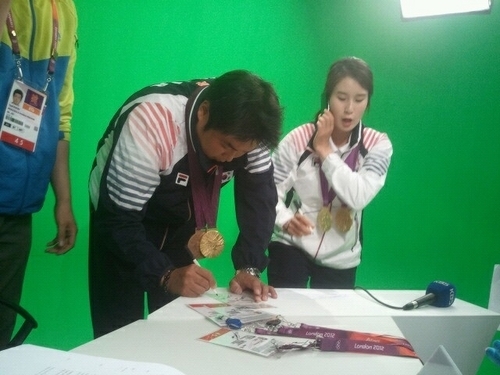 KBS 放送団メインMCを引き受けてロンドンに泊まっている遭遇種アナ運では最近自分が進行する ‘2012 ロンドンオリンピックここはロンドン’のスタジオを訪問した二人と会った. 既報盃-オ・ジンヒョク選手は ‘金メダルカップル’になった所感を明らかにして終始一貫和気あいあいした雰囲気を引き続いた.