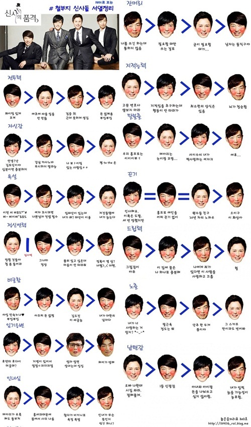 最近オンラインコミュニティには '楽しさで見る 'ジェントルマンの品格' 序列'という題目の文が載せられた. これは SBS 週末ドラマ 'ジェントルマンの品格'に出演中のチャン・ドンゴン, キム・スロ, キム・ミンゾン, 李ゾンヒョクを項目に合わせて順位を決めて並べておいたことで人目を引いている.