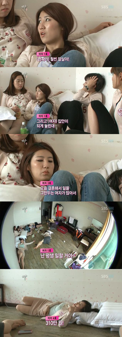 また女 4号は "結婚する時貸し出したくさん受けて家貸し金のため貧しく暮すことは嫌いだ"と告白したし彼女の言葉に女 3号は "このごろ結婚して仕事やめる女が多い"と言いながら "一生働く"は女 1号の反駁に "みんなそんな考えをするが結婚して赤んぼうを生めば大変で耐える事ができないようだ"と伝えた.