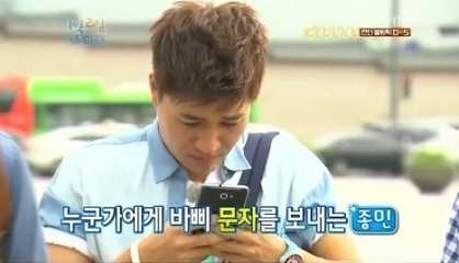 この日放送でメンバーたちはミッションを遂行するために各自の携帯電話を製作陣に任せなければならなかった. ところで携帯電話をすぐ提出したメンバーたちと違いキム・ジョンミンは急いで誰かに文字を送り始めた.