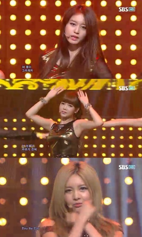 ティアラは 29日午後生放送に進行された SBS 歌謡順位プログラム '人気歌謡'に出演して 'デーバイデー'をお目見えした. ファヤングと小宴が抜けたまま進行された 27日 KBS 2TV 'ミュージックバンク' 以後 2番目舞台だ.