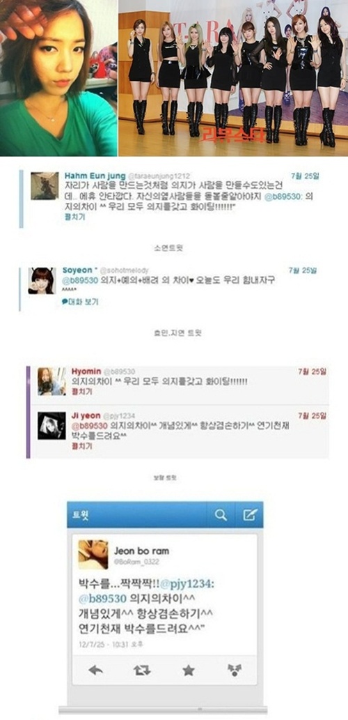 しかし公演後ティアラのメンバーヒョミンは 25日自分のツイッターに "意志の差. 私たち皆意志を持ってファイト!!!!" であるという文を残して, 引き続き引き延ばしが "意志の差. 概念ありげに. いつも謙遜だ. 延期天才拍手を差し上げます" と答を送って論難が始まった. 恩情やっぱり "席が人を作ることのように意志が人を作ることもできることなのに...エヒュ切ない. 自分のそばの人々の面倒を見ること知らなくては"という文を残した.